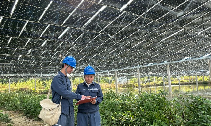 工作人员检查光伏项目。受访单位供图