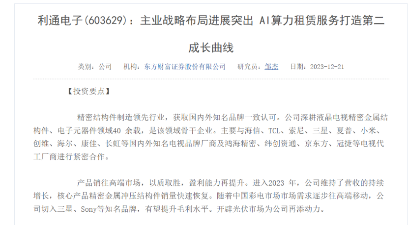 判决书并未披露相关人员的姓名。不过,券商中国记者注意到,原东方财富证券电子首席分析师邹杰,为上海交通大学工学博士,曾在2023年发布利通电子(603629.SH)相关研报。2023年,利通电子股价年度涨幅高达155.37%。
