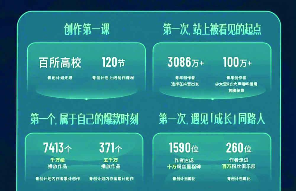 抖音还投入百亿级专项流量,帮助青年创作者实现从兴趣到职业的成长。新加入创作者的前三稿原创作品可获得定向激励,好内容“起步即被看见”;成长期创作者则可通过投稿、课程学习等持续获得扶持;优质爆款内容更能获得百万级流量助推。