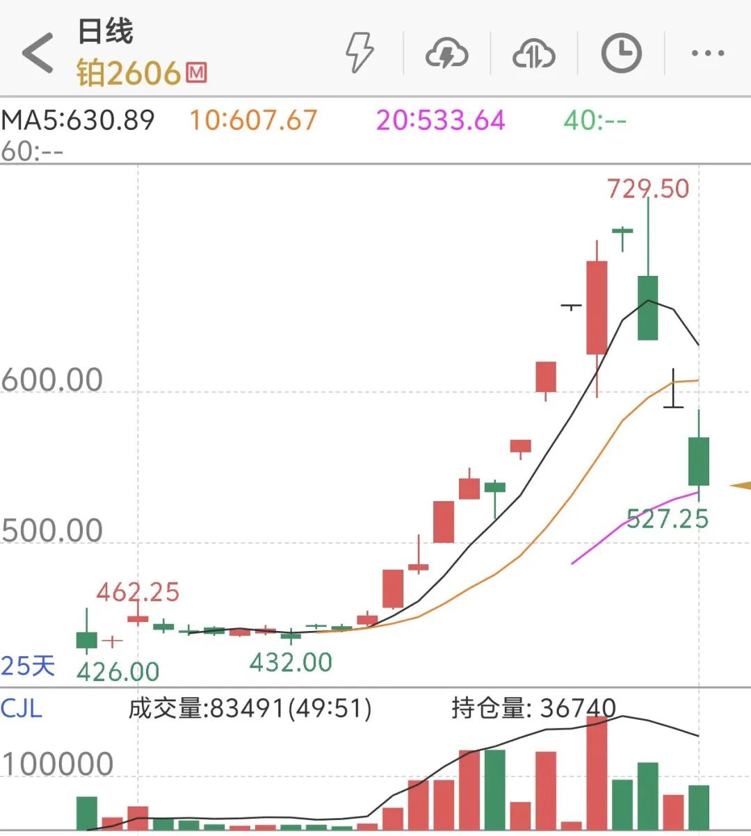 2026年元旦假期前最后一个交易日,铂、钯期货价格延续跌势。截至12月31日午间收盘,广期所铂期货主力2606合约下跌10.25%,至538元/克;钯期货主力2606合约下跌9.6%,至405.7元/克,当前价格已回落至上市首日价格运行区间。同时,NYMEX铂期货主力合约一度逼近2007美元/盎司,NYMEX钯期货主力合约一度逼近1556美元/盎司。