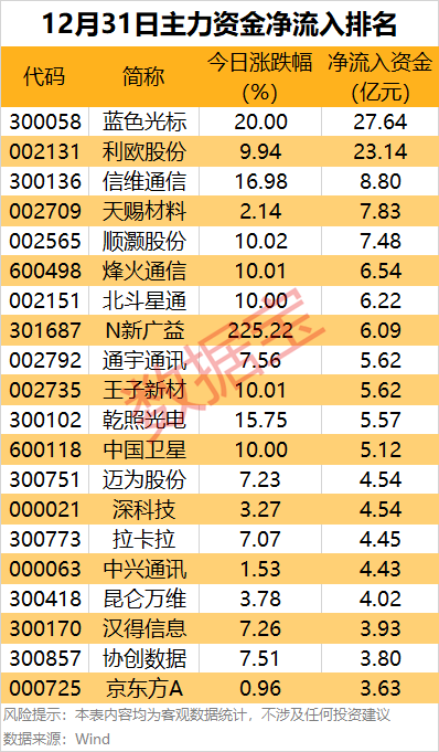 此外,还有信维通信、天赐材料、顺灏股份、烽火通信、北斗星通、N新广益等主力资金净流入金额居前。