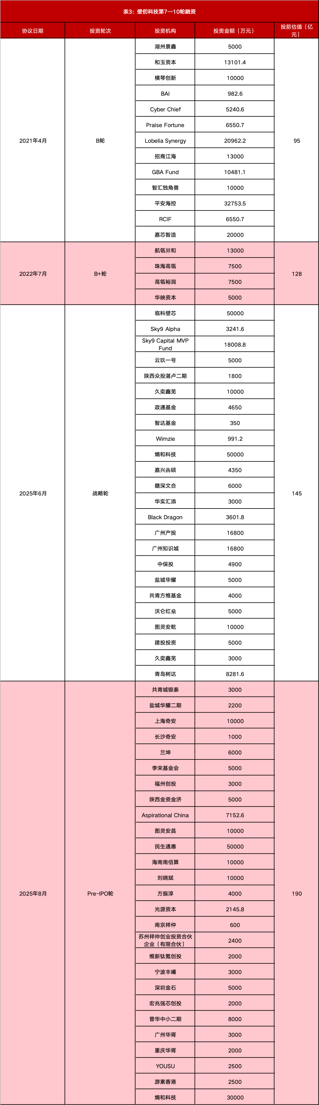 作为对照,2021—2024年期间,壁仞科技共完成18.8亿元融资;而同一时期,摩尔线程、沐曦股份分别斩获91.7亿元、39.5亿元融资。直至启动IPO前夕,壁仞科技才连续完成两轮融资,最终将累计募资总额锁定在93.2亿元。