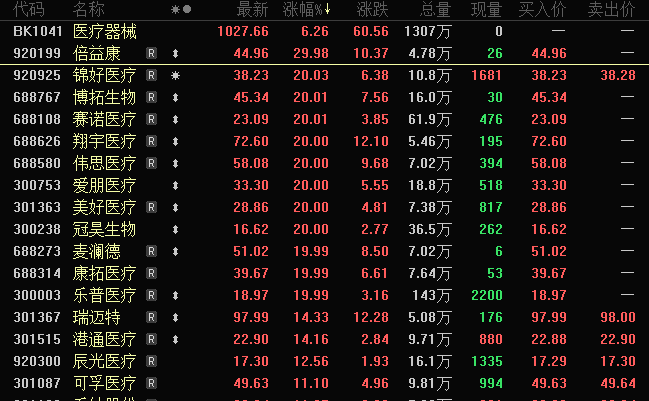 1月5日,A股医疗器械板块集体上涨,行业指数大涨5.64%,概念股中博拓生物、赛诺医疗、冠昊生物等11股“20cm”涨停,新华医疗涨停,锦好医疗、瑞迈特、港通医疗、可孚医疗等7股涨幅超过10%,超过60亿主力资金净流入医疗器械板块。