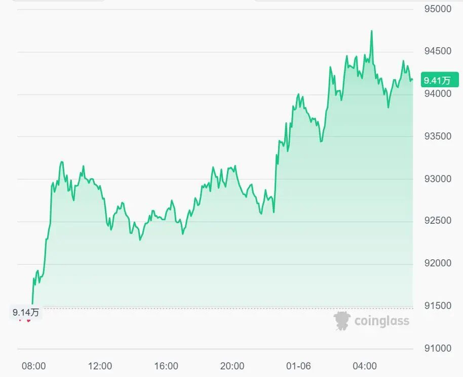 加密货币普涨,比特币大涨站上94000美元。