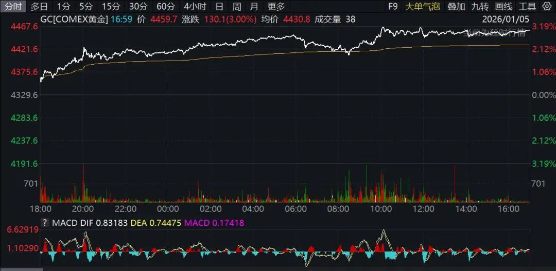 国际金银大涨,1月5日COMEX黄金期货收涨3%;COMEX白银期货涨7.63%,报76.43美元/盎司。