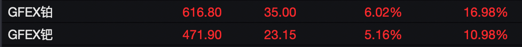 1月6日,国内期货市场有色商品涨幅居前。截至下午收盘,沪银主力合约2604大涨超7%;铂、钯经历节前大跌,近两日也双双收获超10%涨幅,其中仅6日,主力合约就分别报涨6.02%、5.16%;沪金主力合约2602则在节前大跌后,重回千元关口上方,报收1004.98元/克。