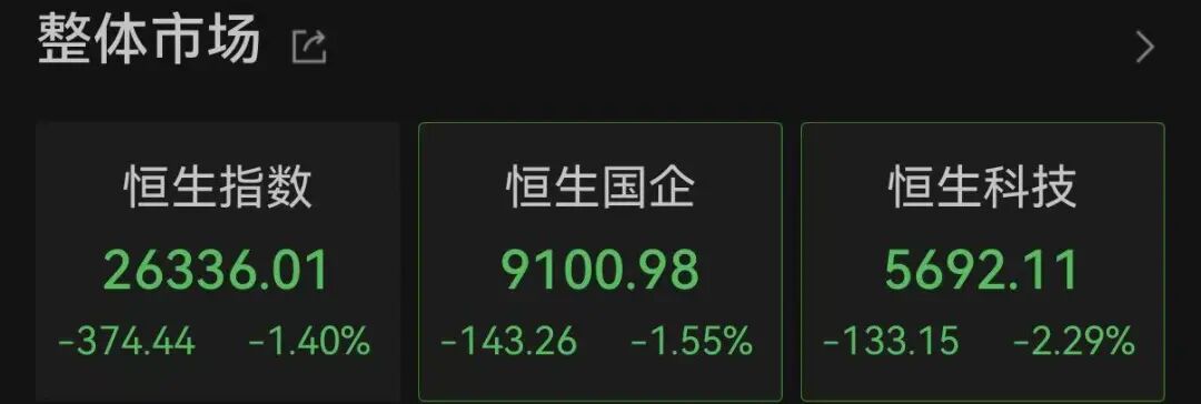 港股方面,恒生指数跌超1.4%,恒生科技指数则跌超2%。