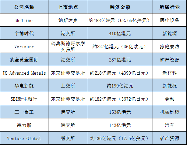 以融资金额算,2025年全球前十大IPO中,港交所占据4个,东京证券交易所有2个,上交所、纳斯达克、纽交所分别有1个,瑞典安防巨头Verisure的上市,也让斯德哥尔摩交易所榜上有名。值得关注的是,前十大IPO里行业分布并不集中。矿产资源和新能源行业分别有两家,其余分布在生物医药、安防、金融等行业。