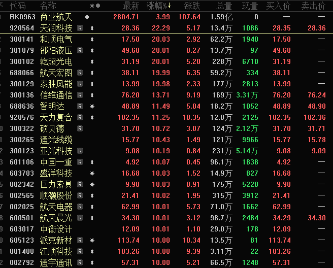 商业航天板块掀起涨停潮。