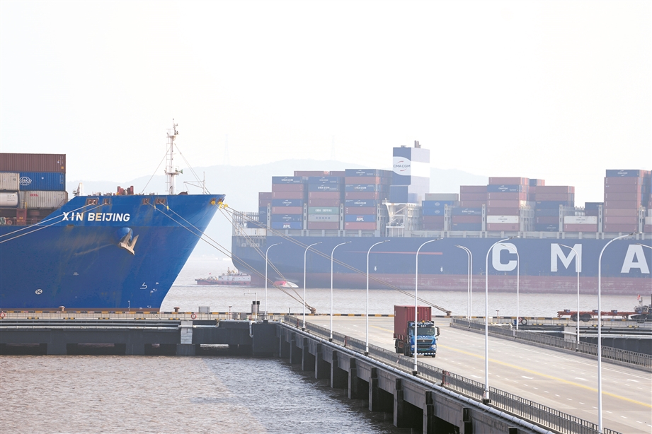 近日,记者从宁波舟山港获悉,2025年宁波舟山港完成货物吞吐量超14亿吨,连续17年位居全球第一,宁波舟山港也由此成为全球首个年货物吞吐量超14亿吨的大港。 新华社记者 黄宗治/摄