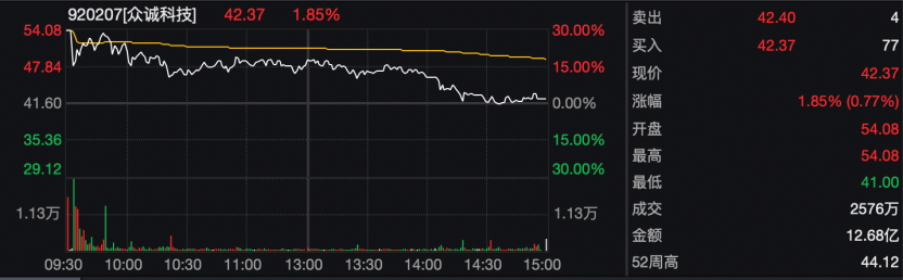 众诚科技1月13日股价也巨震,当天该股股价开盘“30cm”涨停,但很快开板并跳水,盘中一度翻绿,收盘时小幅上涨1.85%,全天振幅高达31.44%,成交量也较此前几个交易日明显放大。众诚科技也是2026年以来的首批翻倍股之一,1月13日盘中,众诚科技最高一度至54.08元,相较之下,2025年底其股价收报22.40元。