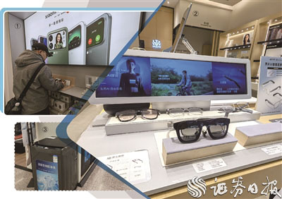 图①消费者正在选购智能产品图②眼镜店内摆放的智能眼镜图③家电卖场展示的以旧换新商品郭冀川/摄