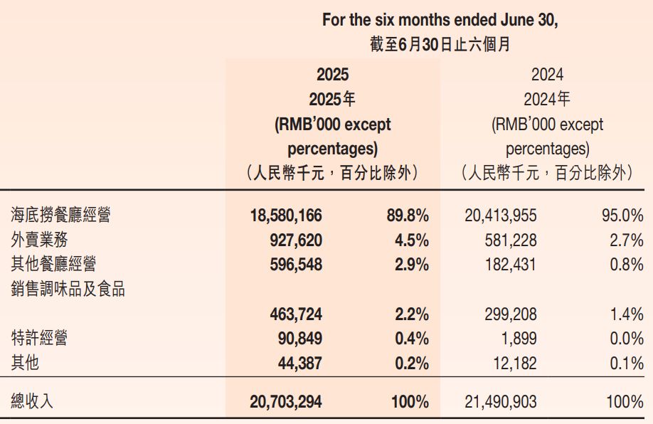 值得注意的是,这一系列调整发生在海底捞传统火锅主业承压、多项创新业务进入密集推进阶段的背景之下。2025年上半年,海底捞的营收、净利润及翻台率均出现同比下滑,而外卖、多品牌及加盟业务则快速扩张,尤其在创新业务层面的探索明显加速。