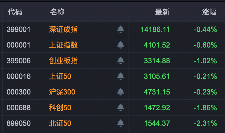今日早盘,A股低开震荡调整,上证指数下试4100点支撑,科创50开盘跌破1500点,深证成指、北证50、创业板指也有所下跌。下跌个股远多于上涨个股,市场成交呈现大幅萎缩的趋势。
