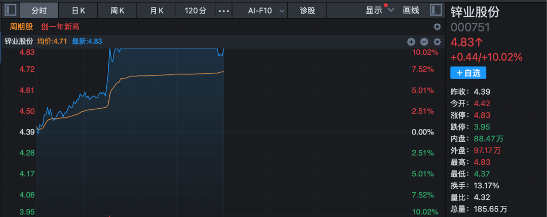 有色金属概念股早间逆市拉升,板块指数一度大涨逾3%,创2007年11月以来18年新高。锌业股份、罗平锌电、新威凌等强势涨停或涨超10%。