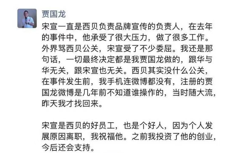 西贝公关副总裁确认离职!贾国龙:他是个好人