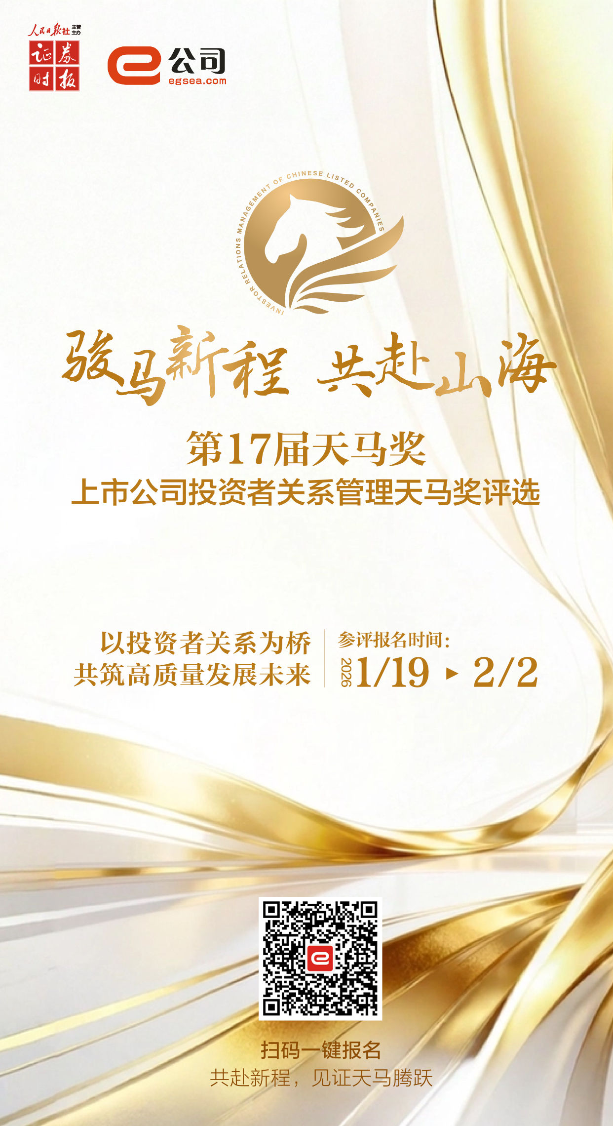 人民财讯1月19日电,第十七届上市公司投资者关系管理天马奖评选已于2026年1月19日启动报名。本届评选新增“上市公司治理卓越领航者”及“港股上市公司投资者关系管理股东回报天马奖”,旨在进一步健全投资者关系评价体系,推动投资者关系管理向更全面、更深层次发展。