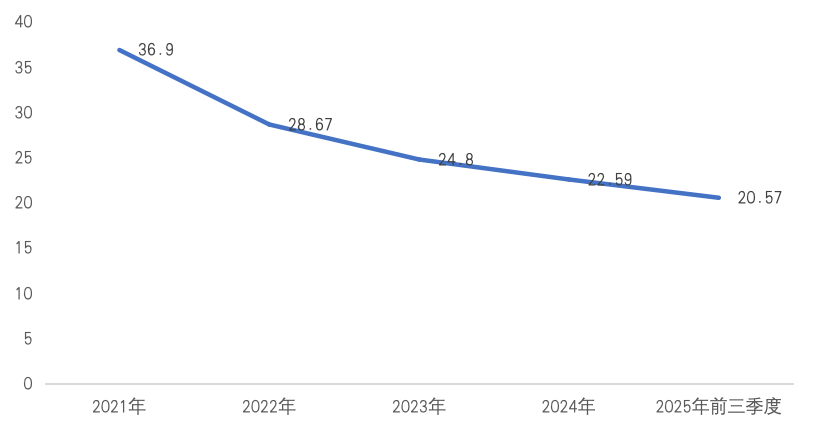但向日葵的医药之路同样坎坷。光伏业务剥离,致使公司的营收规模大幅缩水;医药板块则面临国内集采、医保控费等政策降价及原材料、人工成本上涨等因素的挤压,盈利能力持续被削弱,公司毛利率水平一路从2021年的36.90%降至2025年前三季度的20.57%。