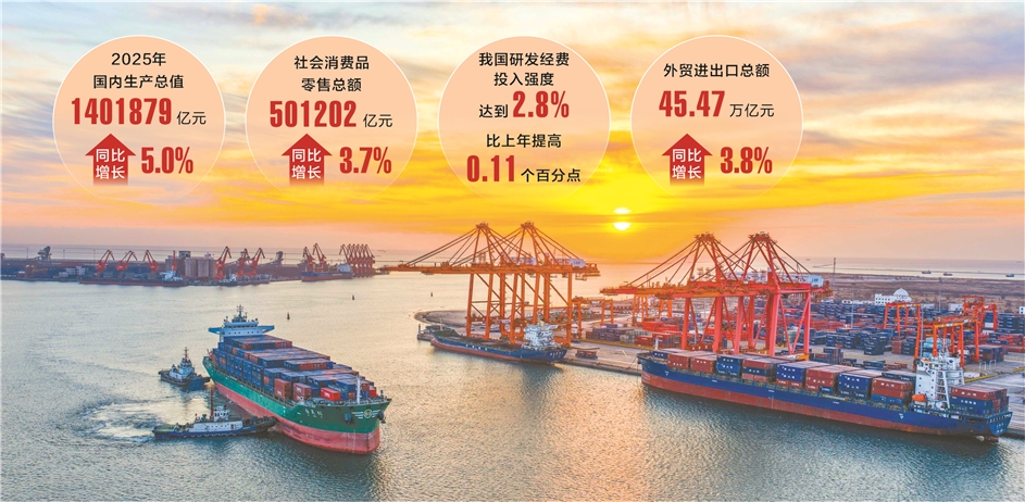 1月19日,国新办举行2025年国民经济运行情况发布会。国家统计局局长康义表示,面对复杂严峻的外部环境和国内多重挑战,中国经济顶住压力、稳中提质,全年国内生产总值(GDP)同比增长5.0%,经济总量首次突破140万亿元大关,“十四五”主要目标任务圆满完成。