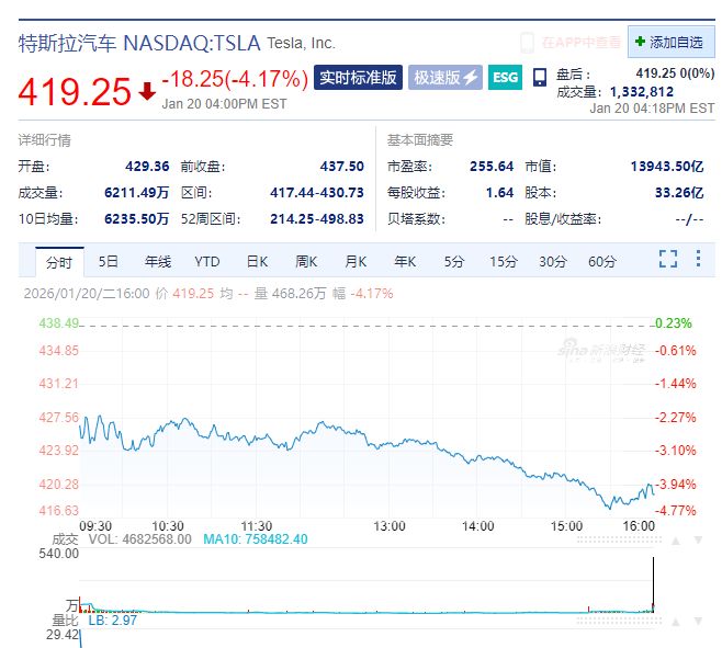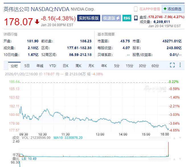 受美国最新的关税威胁影响,1月20日,美股三大指数全线大跌。