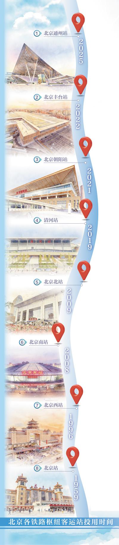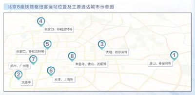 30年来,北京市从北京站、北京西站两座铁路枢纽客运站,发展到北京站、北京西站、北京南站、北京北站、清河站、北京朝阳站、北京丰台站、北京通州站8座。如今,北京西站通达32个省级行政区、211个地级及以上城市,通达程度全国领先。从北京出发的列车可直达266个地级及以上城市。2025年,北京铁路旅客发送量达3.9亿人次。