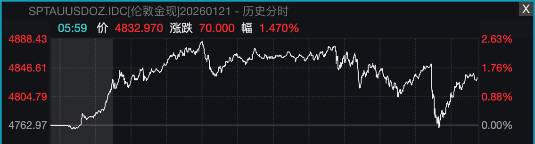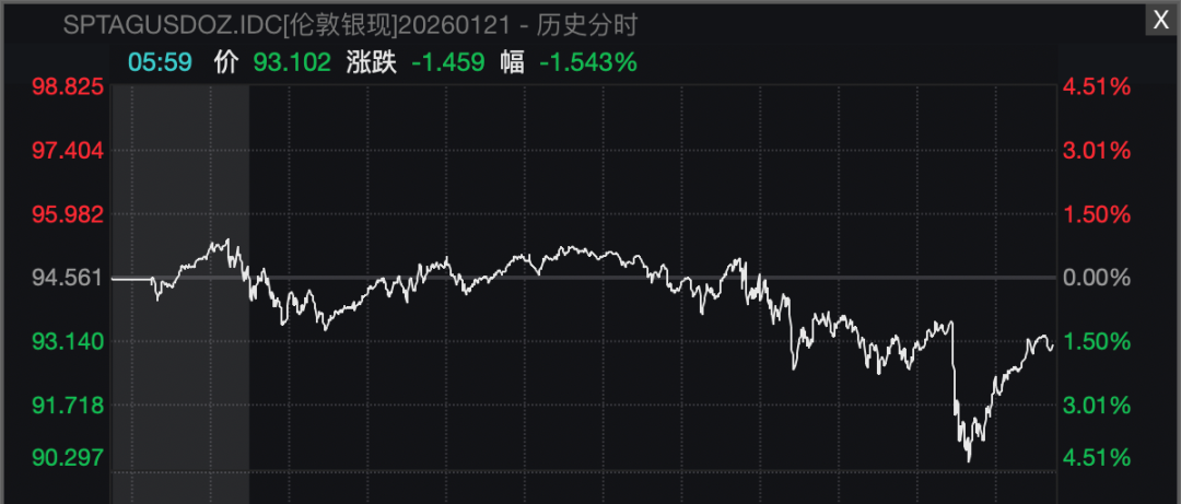 昨夜尾盘,黄金、白银走出深“V”行情。现货白银一度跳水跌超4.5%,之后快速拉升,截至收盘跌幅为1.54%,报93.102美元/盎司。现货黄金振幅较小,盘中也一度快速回调,最终收涨1.47%,报4832.97美元/盎司。