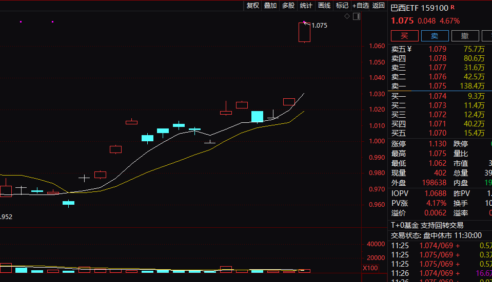 值得注意的是,在今天上午的ETF市场中,两只巴西主题的ETF大涨,涨幅居于各类ETF前列。