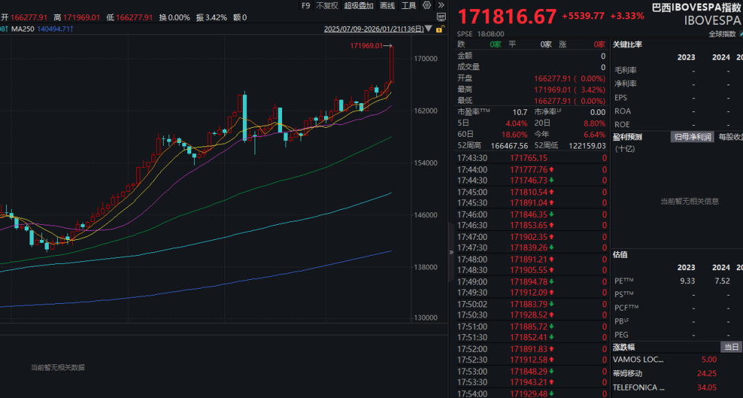 上述两只巴西主题ETF大涨的背景是,近期巴西股市走势强劲。当地时间1月21日,巴西IBOVESPA指数大涨逾3%,2026年以来该指数已经累计上涨逾6%。