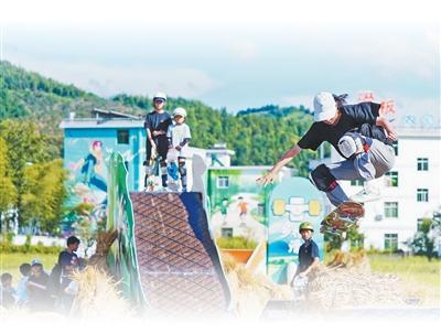 滑行、尖翻、收板……在江西崇义县元田村的滑板基地,每逢节假日,不少身穿潮流服饰的滑板爱好者便会来打卡。基地虽是建在村里,但街式、碗池、泵道等场地应有尽有,部分场地达到举办国家一级赛事的标准。