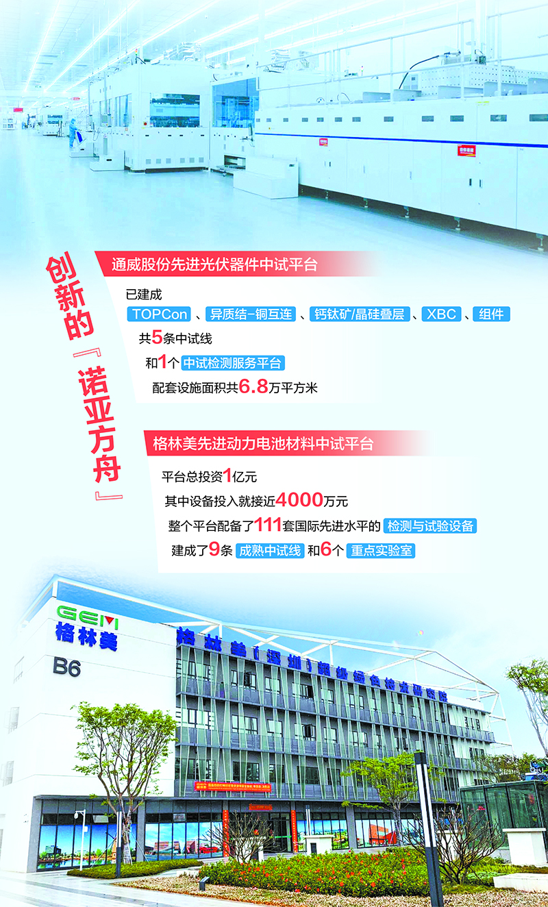 这是光伏行业内单体面积最大的中试平台,也是首批21家国家级制造业中试平台之一。邢国强向记者表示,物理空间的大,代表的是一种综合性、全链条的实验能力。这个平台可容纳光伏产业几乎所有主流和前沿技术的并行研发,让不同技术路线的研发、验证得以同步进行,极大提升了研发效率。巨大的空间使得平台能够建设覆盖“核心材料—先进器件—重点装备”的完整中试验证链条,还配套建设组件研发中试线、CNAS认证的可靠性实验室、户外实证基地等,让新技术实现从“点”到“面”的完整验证。