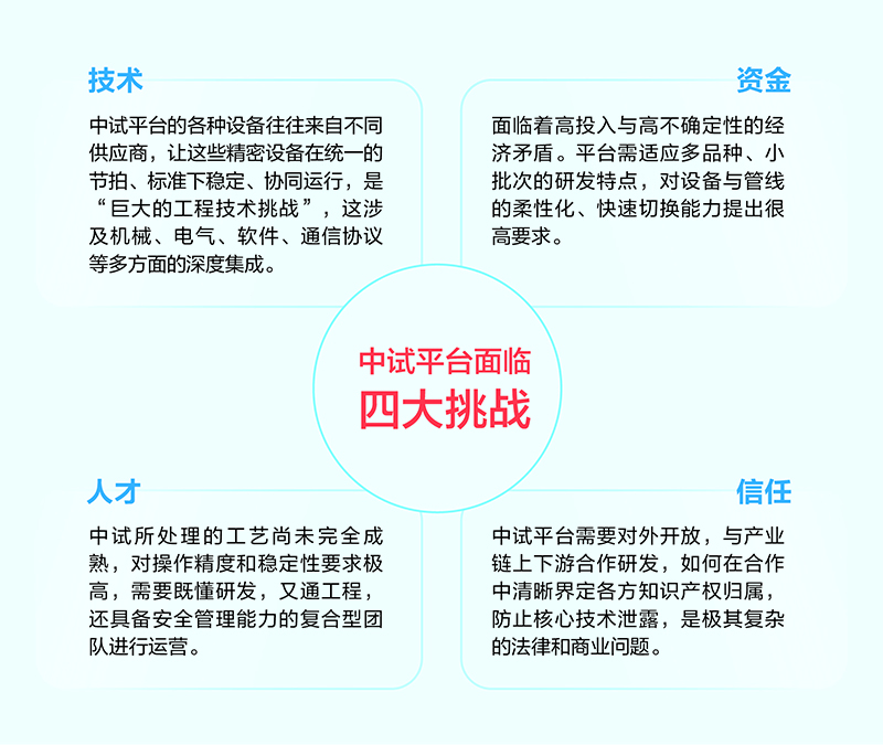 建设一艘能够横渡“达尔文死海”的方舟,本身就是一场闯进“创新无人区”的探险。尽管制造业中试平台正逐步成为焦点,但在中试平台的建设和运营中,还普遍面临着技术、资金、人才、信任这四大挑战。