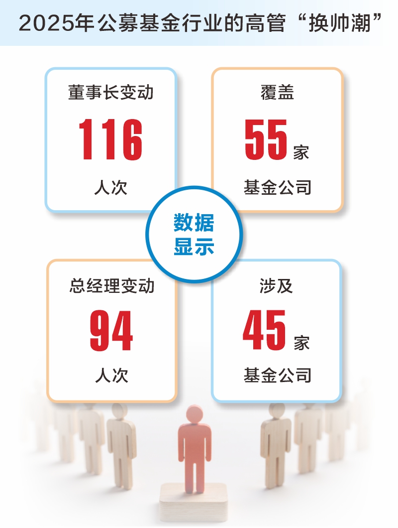 2025年,公募基金行业迎来一场高管“换帅潮”。Wind数据显示,全年高级管理人员变更达462人次,涉及162家基金管理人,两项数据均创历史新高。董事长、总经理等核心职位变动频繁。