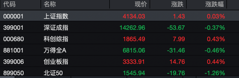 A股市场今天上午整体涨跌互现,上证指数在4100点以上运行。截至午间收盘,上证指数、科创综指、创业板指等上涨,深证成指、北证50指数走低,全市场超4000股下跌。