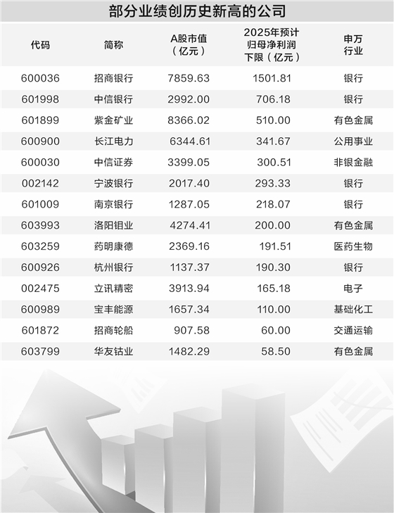 据证券时报·数据宝统计,截至1月27日收盘,已披露2025年度业绩预告、业绩快报的公司中,按照业绩预告归母净利润下限统计(无下限则取公告数值),剔除上市时间不足两年的公司,2025年归母净利润创历史新高的公司有158家。