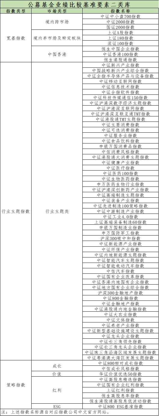 二类库则基于现有产品基准使用情况,纳入具有一定使用率、市值容量较大的指数,对一类库形成有效补充。
