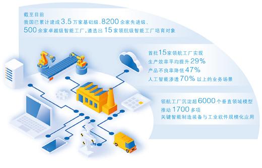 截至目前,全国已累计建成3.5万家基础级、8200余家先进级、500余家卓越级智能工厂,并遴选出15家领航级智能工厂培育对象。