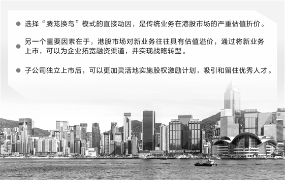 华辉创富投资总经理袁华明向证券时报记者表示,港股上市公司“腾笼换鸟”操作是一些依托传统业务底盘,孵化出高成长性业务单元大型集团企业的“进阶”选择。当上市母公司的传统业务估值极低时,大股东才有动力承担私有化成本,并将市场认可的新业务单独推向高估值市场。