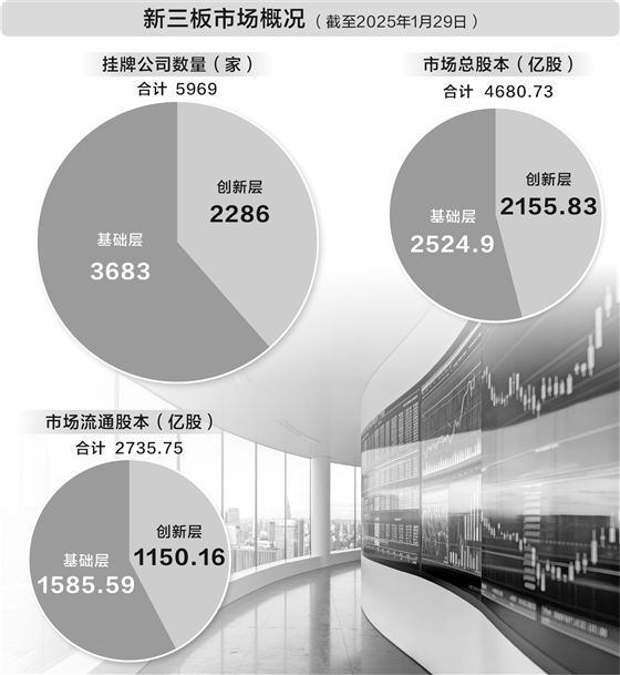 截至1月29日,全国股转公司有新三板挂牌企业5969家,其中创新层企业2286家,基础层企业3683家。