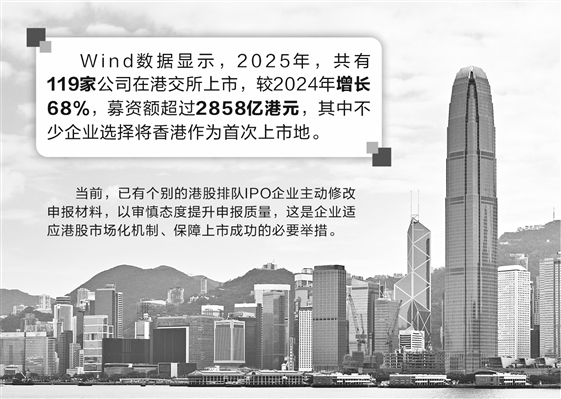 自A股实行逆周期调节,放慢IPO节奏后,不少内地企业纷纷赴港IPO。Wind数据显示,2025年,共有119家公司在港交所上市,较2024年增长68%,募资额超过2858亿港元,其中不少企业选择将香港作为首次上市地。