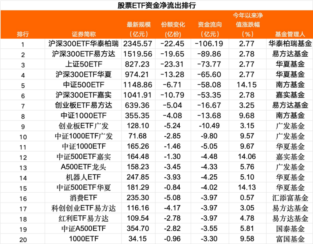 股票ETF净流出近300亿元
