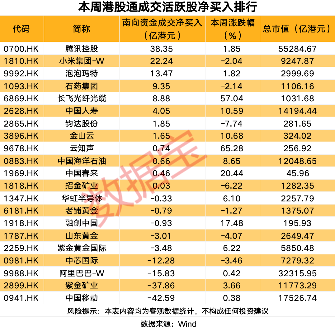 腾讯控股南向资金净买入超38亿港元