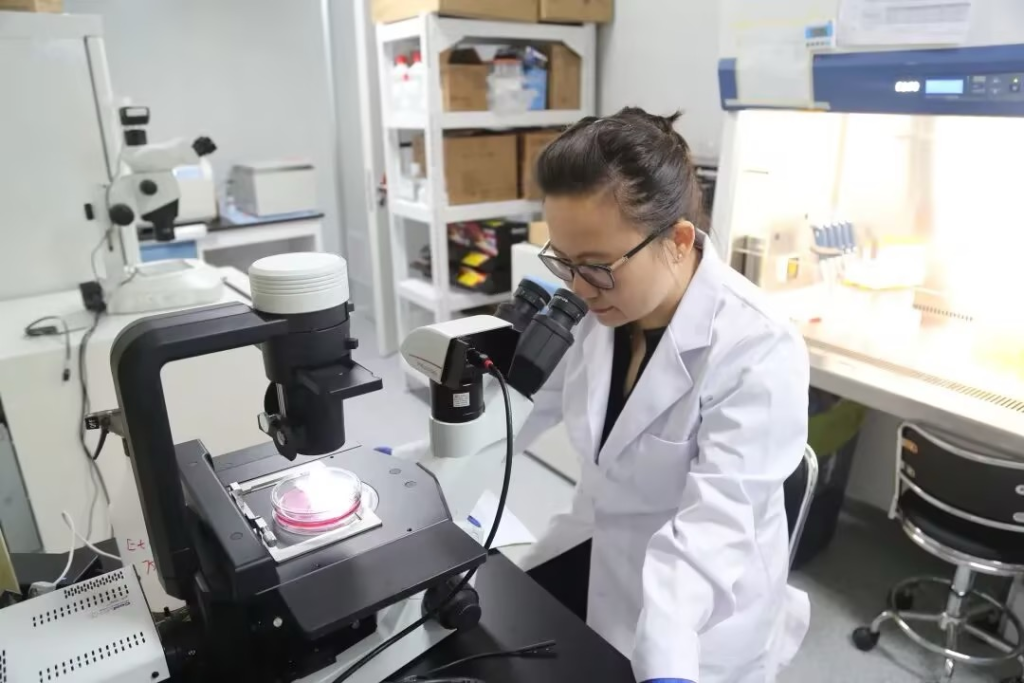 马丽佳博士在实验室观察AAV在细胞中的感染效率。受访者供图
