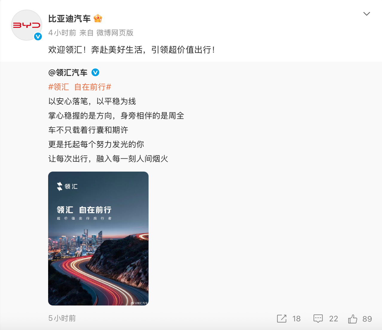 全球新能源巨头比亚迪再添一新汽车品牌。2月2日,比亚迪旗下全新汽车品牌领汇汽车正式官宣亮相。这也是继方程豹汽车、腾势汽车、仰望汽车之后,比亚迪旗下第四个汽车子品牌。