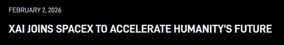 当地时间2月2日,太空探索技术公司(SpaceX)在官网发布由马斯克署名的声明,确认与人工智能企业xAI公司合并。声明称,合并后公司将整合人工智能、火箭、天基互联网、移动设备直连的通信。
