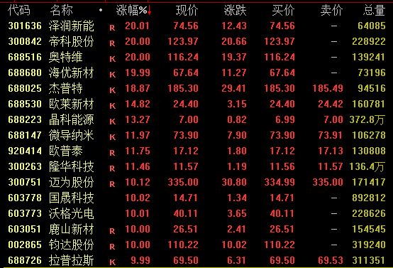太空光伏概念盘中走势活跃,截至收盘,奥特维、海优新材20%涨停,杰普特涨约19%创历史新高;迈为股份涨超10%,钧达股份亦涨停。