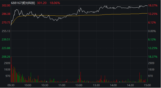 CPO概念盘中大幅走高,截至收盘,炬光科技涨超18%,股价突破300元大关,创历史新高;天孚通信涨超13%,亦创出新高;此外,东田微涨超10%,太辰光涨近9%。