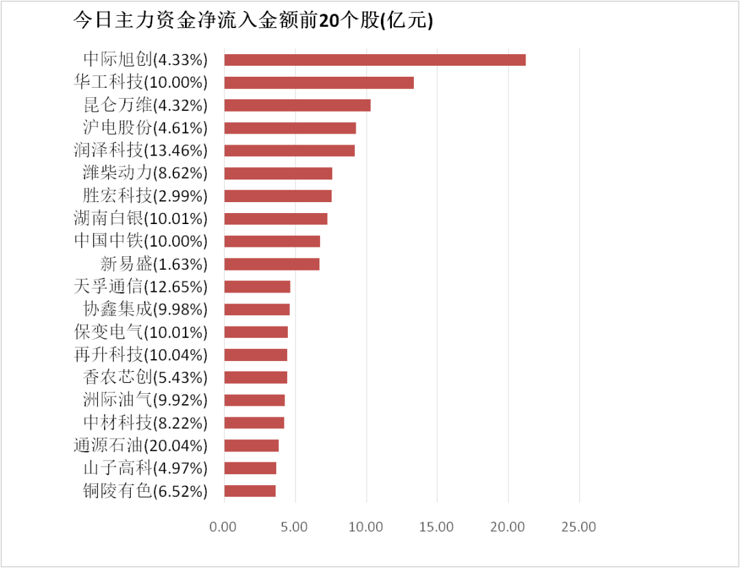 今日A股市场主力资金开盘净流出18.13亿元,尾盘净流出45.04亿元,A股市场全天主力资金净流出105.34亿元。