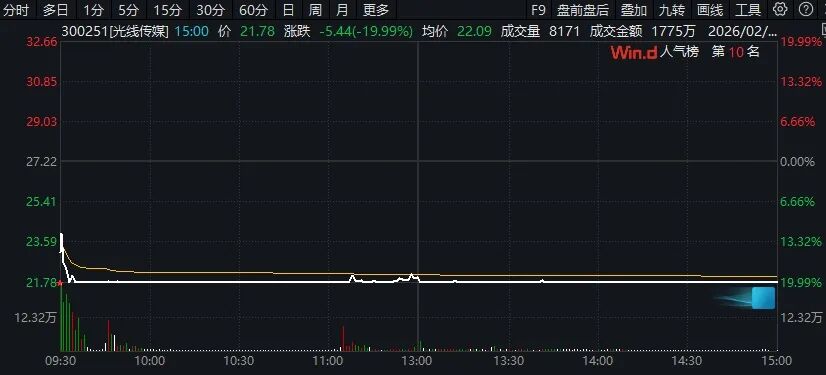 以横店影视为例,该公司2026年以来股价大幅上涨,1月5日至2月10日累计涨幅超过140%。2月24日,横店影视开盘后一字跌停。