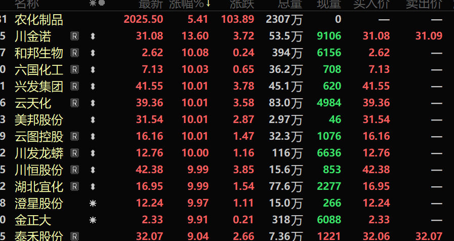 2月24日,A股化肥农药板块集体走高,六国化工、美邦股份、云图控股等多股涨停,川金诺大涨13.6%。