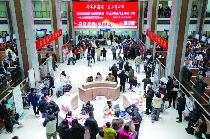 2月24日,江苏省海安市2026春风行动暨就业援助季专场招聘活动现场。 新华社图